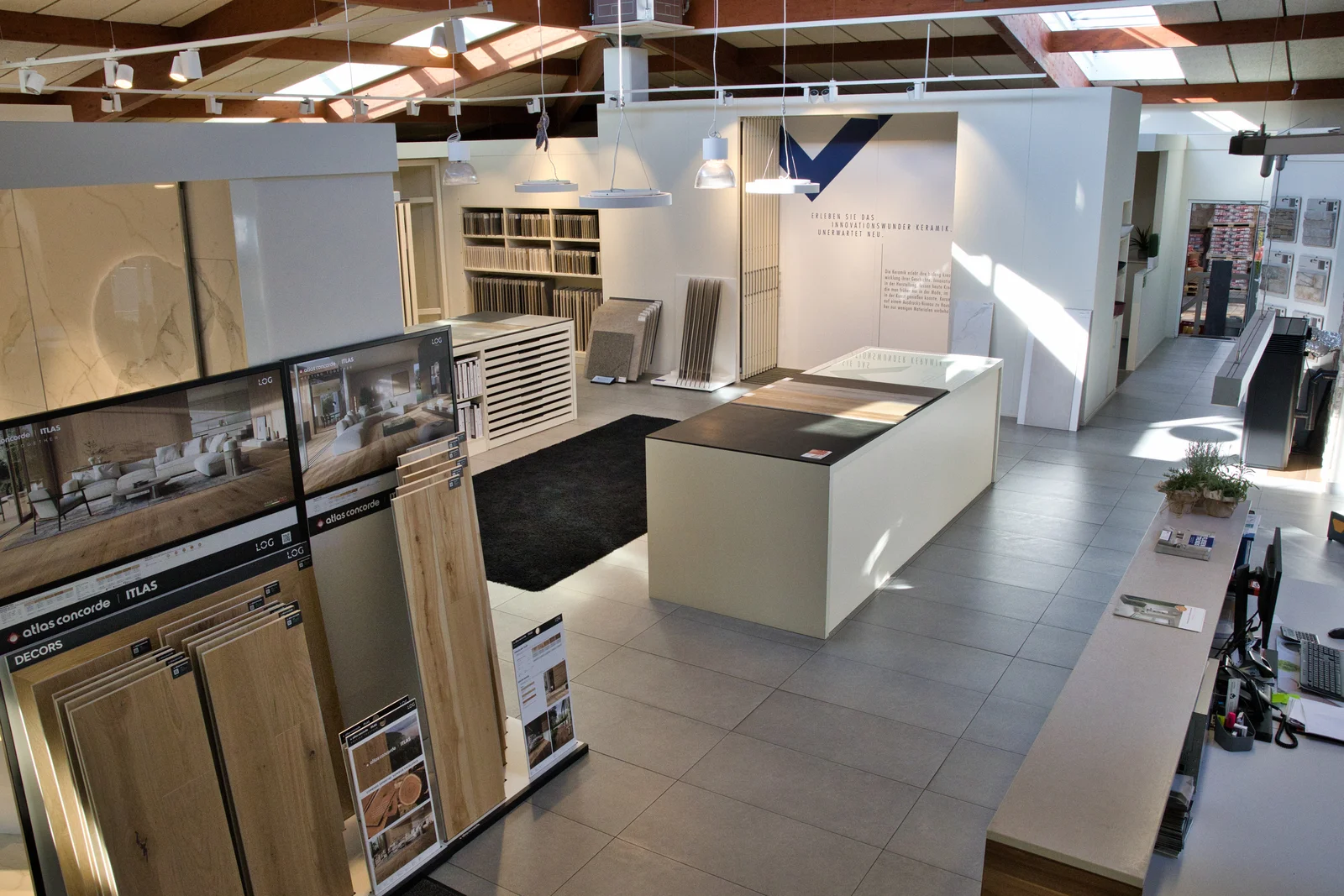 In unserer großzügigen Ausstellung in Kaiserslautern-Hohenecken präsentieren wir Ihnen auf zwei Etagen eine der größten Sortimentsauswahlen der Region. Lassen Sie sich vor Ort inspirieren – von hochwertigen Fliesen in verschiedenen Formaten und Designs über edle Parkett- und Designböden bis hin zu stilvollen Lösungen im Sanitärbereich. Ob Neubau, Renovierung oder individuelle Badplanung – bei uns finden Sie Ideen, Materialien und persönliche Beratung auf über 800 m² Ausstellungsfläche.
